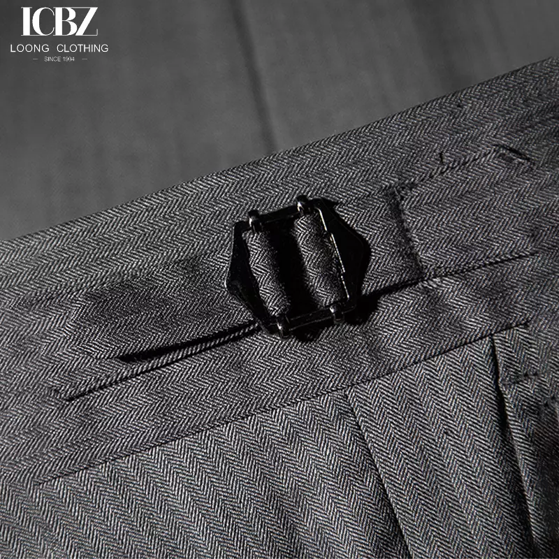 Herringbone Wool Suit Pants Men’s AdjustableButton Italian Business Casual Single Pleat Micro-Elastic Naples Pants