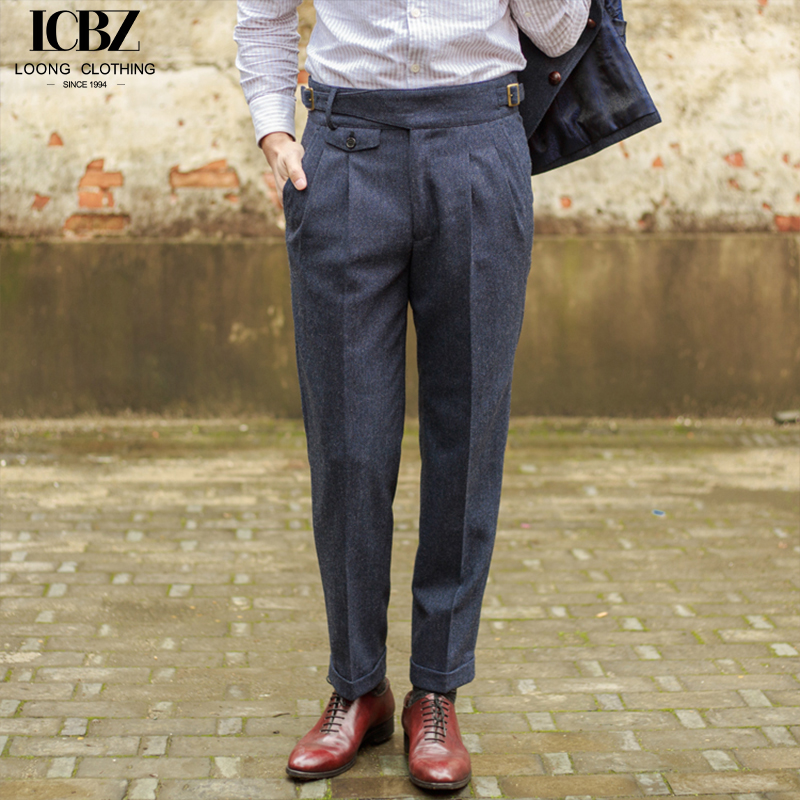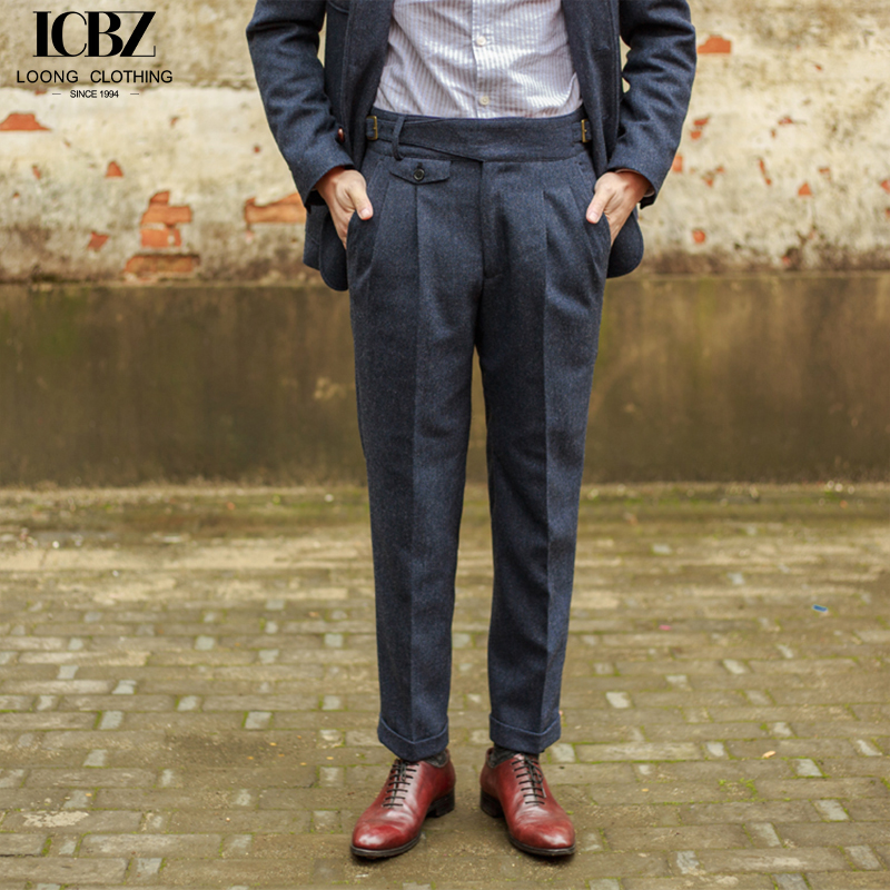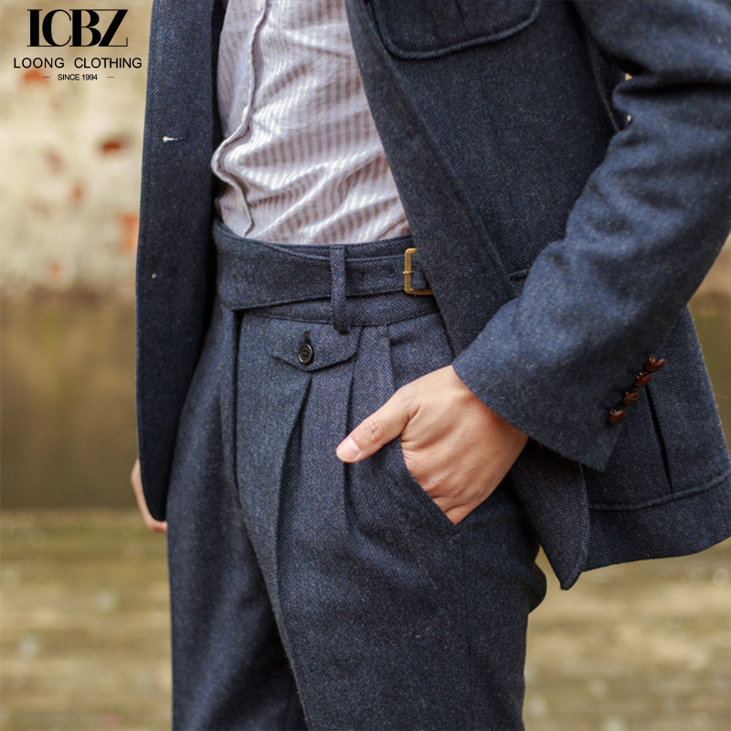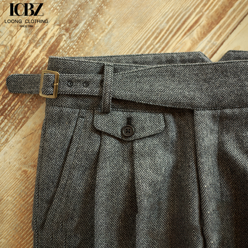 Men’s suit trousers autumn and winter woolen fabrics vintage herringbone Gurkha casual pants, straight hemmed classic trousers