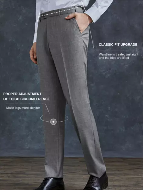 Customized suit pants for every occasion We are good at customizing various types and styles of men’s trousers, such as regular business trousers, casual trousers, silm fit trousers, etc. please let us know if you have any needs about trousers.